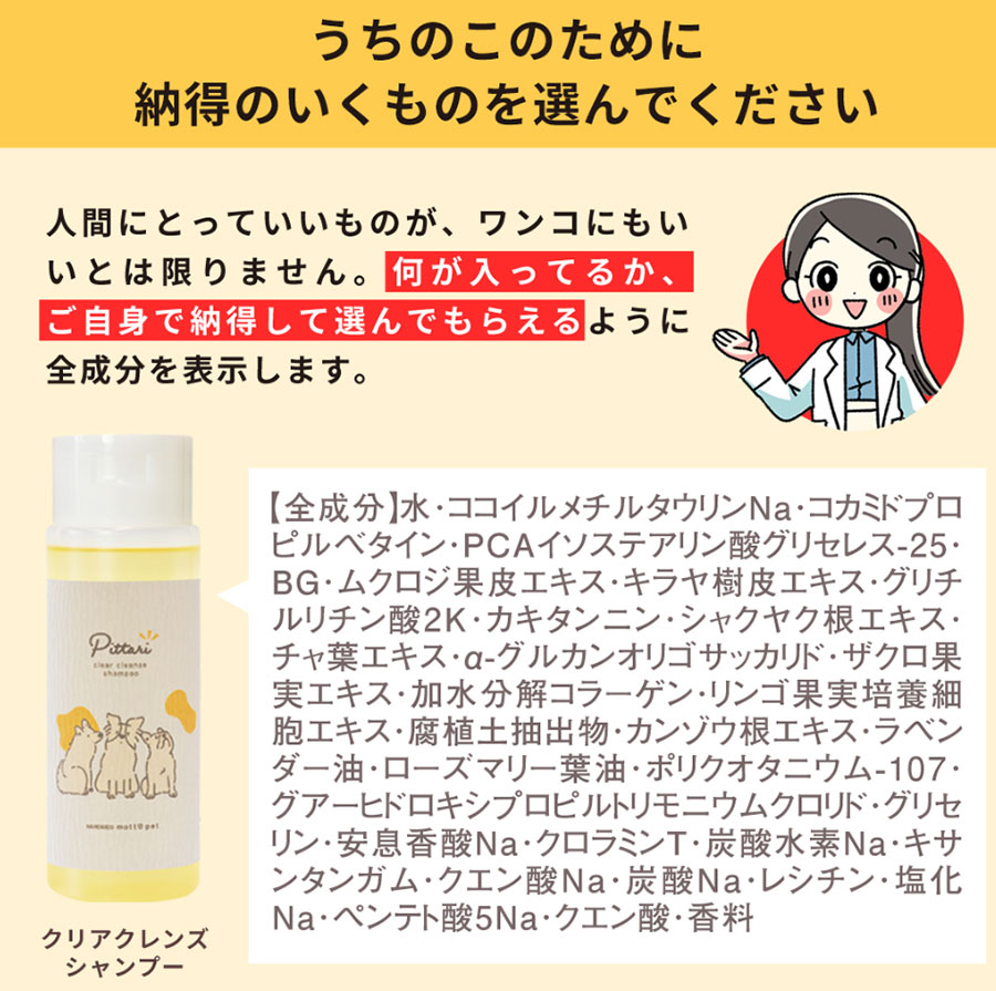 赤ちゃんのように繊細な皮膚であるペットへ、直接付けてもやさしく使える成分と使用感。