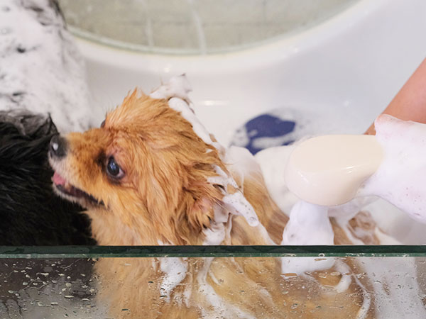 また、ワンちゃんの毛の中に入り込むように少しトロっとした粘度のある泡が特徴で、マイクロバブルの効果で毛穴の奥まで綺麗になり、ミクロの泡がはじけてマッサージ効果も期待できます。